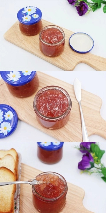 하지만 덩어리 없이 고운 잼을 만들고 싶으신 분들은 믹서에 가볍게 갈아주시면 됩니다~
