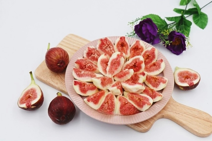 1. 무화과 열매는 흐르는 물에 조심스레 헹궈준 뒤 껍질을 벗겨 적당한 크기로 잘라줍니다.